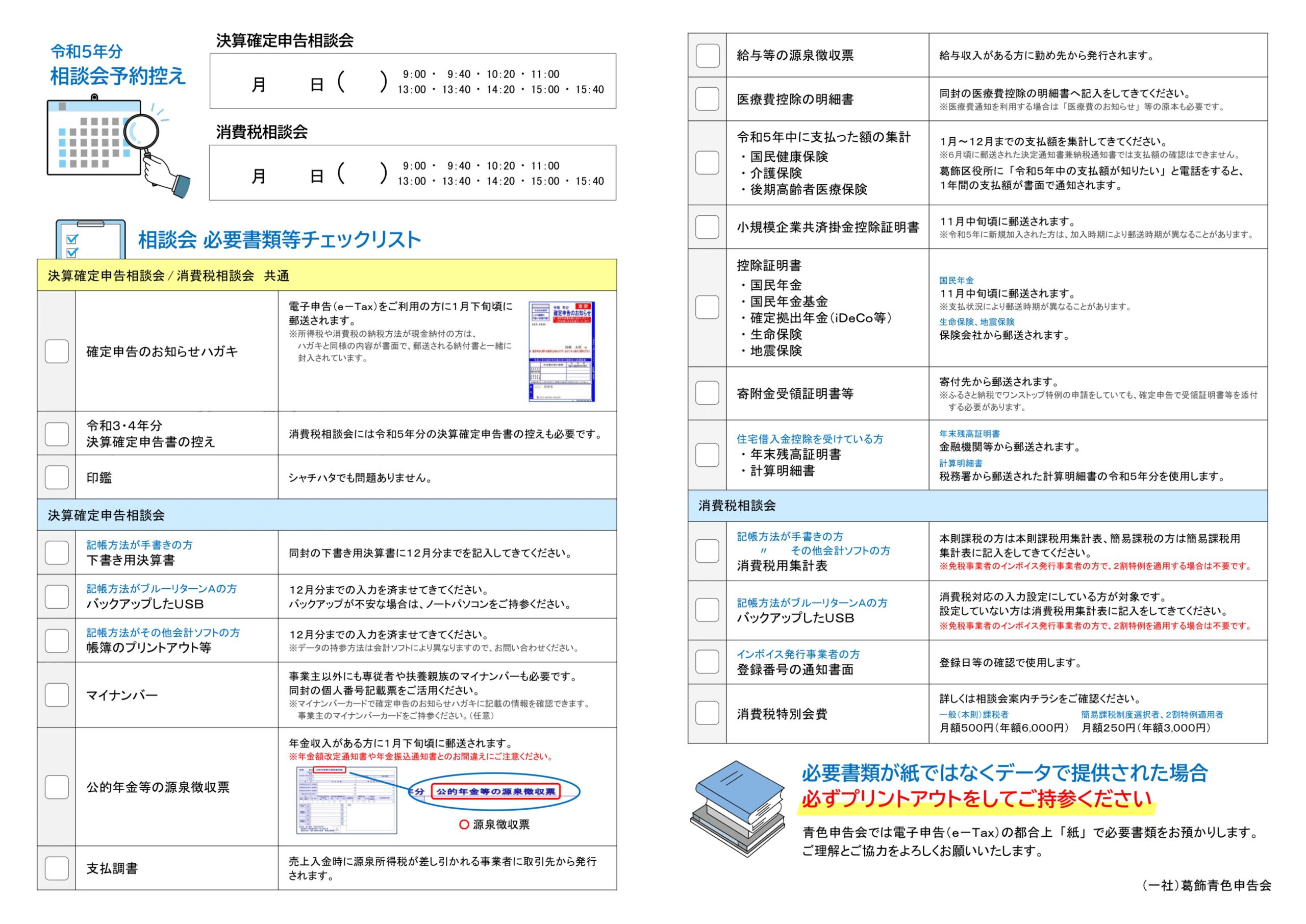 ※以下には、決算確定申告・消費税相談会予約チラシと持ち物チェックシートの画像を添付しております。ご確認ください。