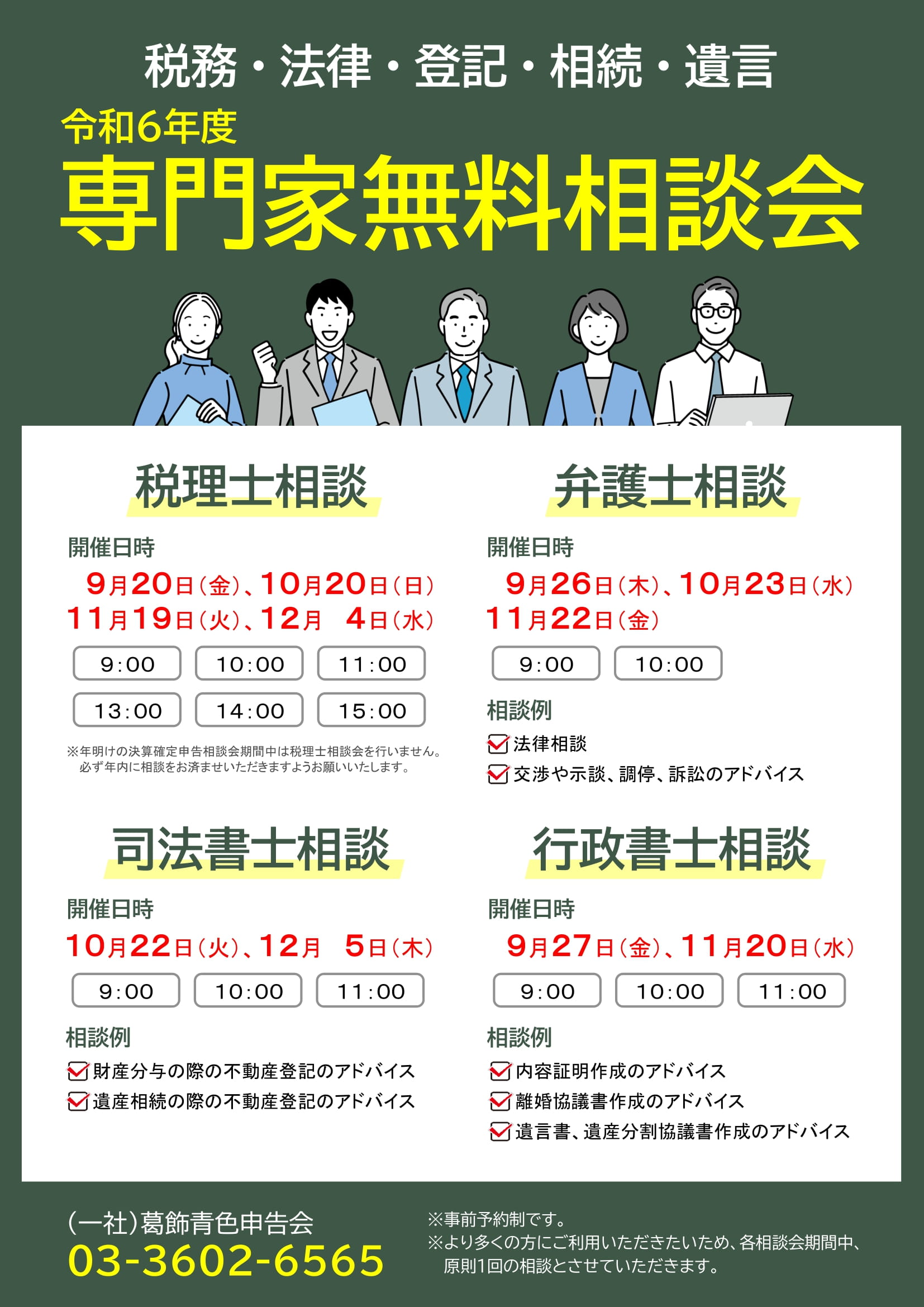 令和6年度 専門家無料相談会日程のお知らせ