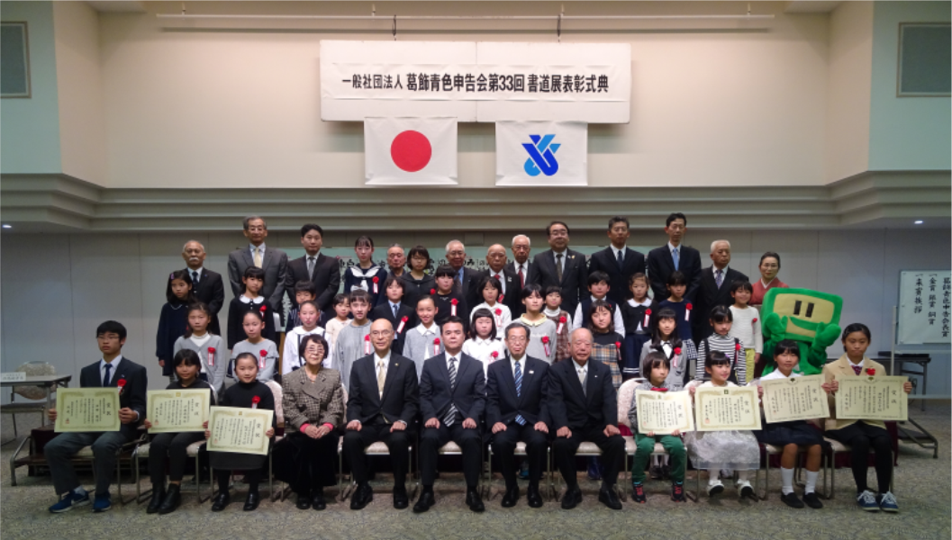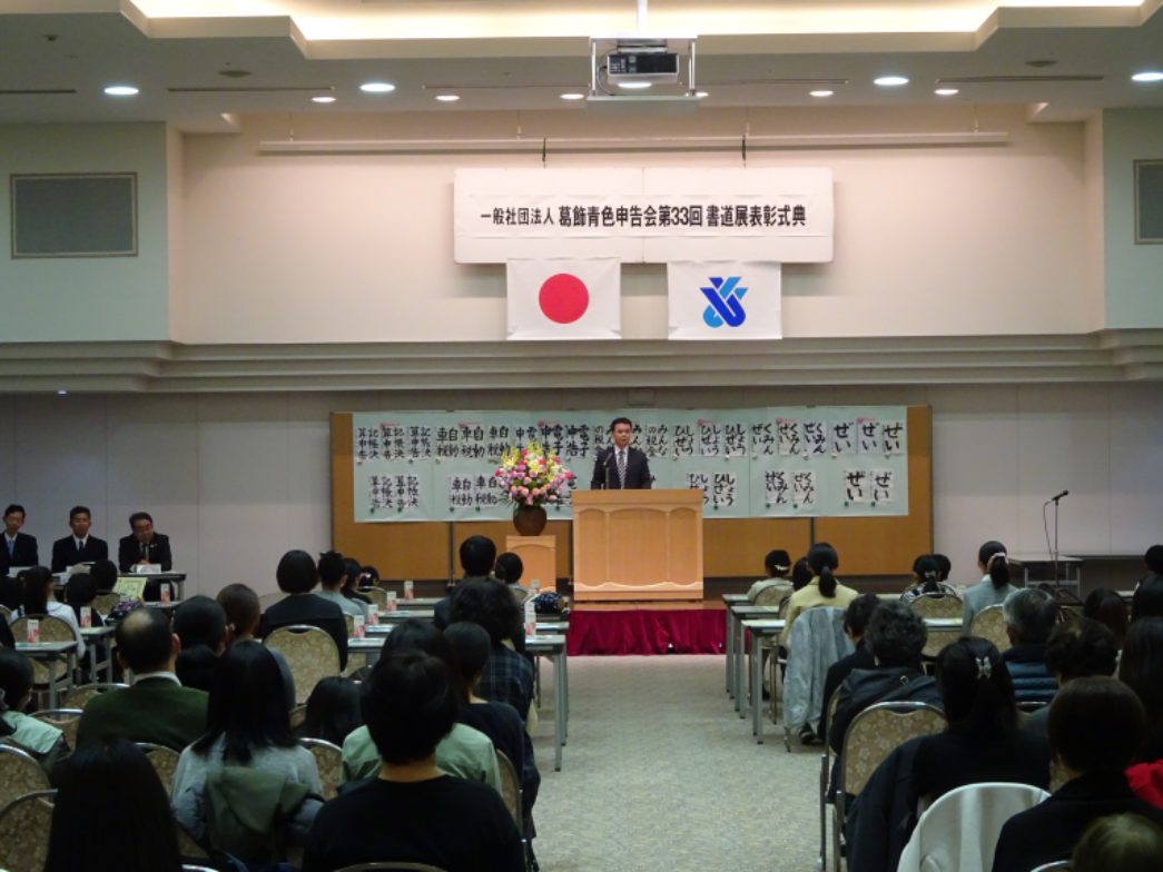 11月28日にテクノプラザかつしか2階大ホールにて当会主催の書道展の表彰式を行い、応募総数1,248点の中から長賞、金賞、銀賞、銅賞を受賞した方に賞状と賞品を贈呈させていただきました。