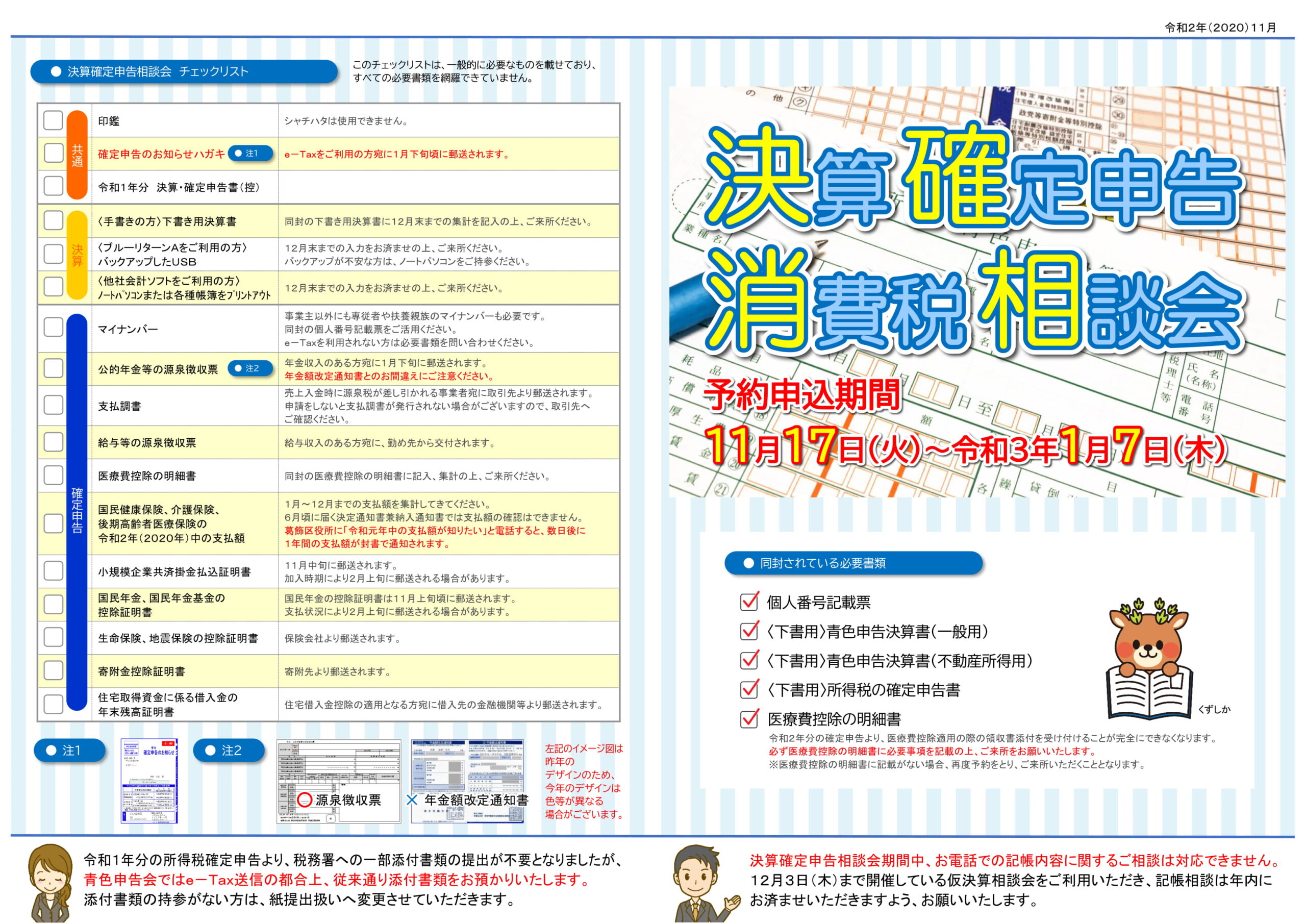 また、11月中も仮決算相談会を開催しております。年明けの相談会がスムーズに進めるうえでの大切な相談会となりますので、事前に仮決算相談会をご予約いただき相談会をご利用ください。
