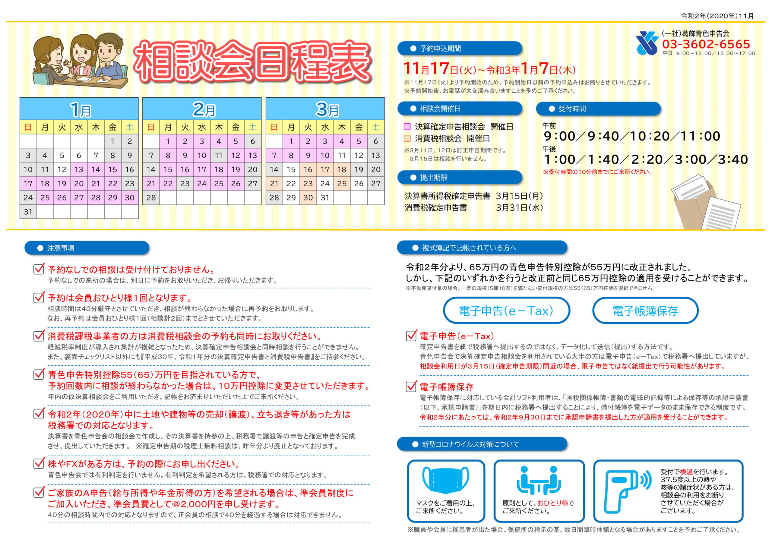 令和2年分の集大成となる相談会でございますので、必ずチラシをご確認のうえご予約をお願い申し上げます。